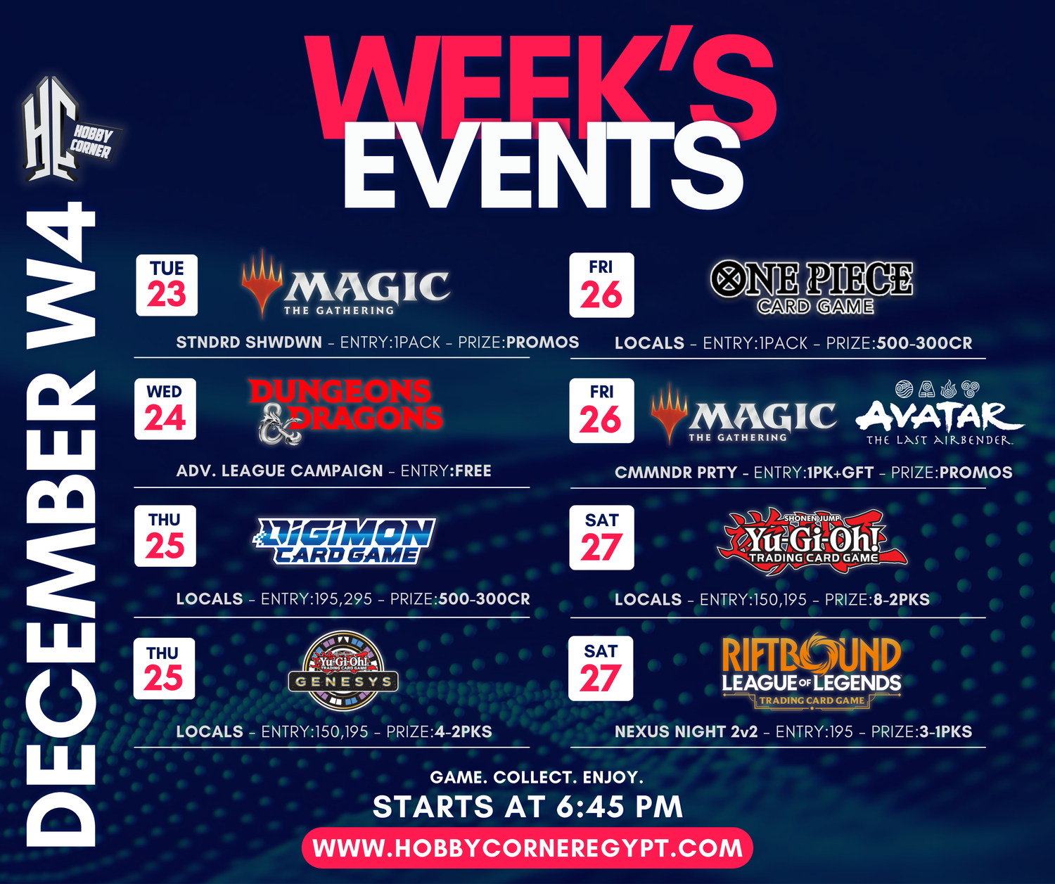 Stay up-to-date with our weekly tournaments and don't miss out on the exciting challenges we have for you. Whether you're a seasoned player or just getting started, our tournaments offer something for everyone. Check out the schedule below and mark your calendar for an action-packed week of friendly competition and great prizes!
