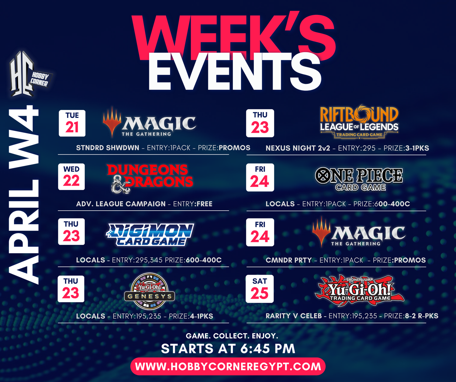 Stay up-to-date with our weekly tournaments and don't miss out on the exciting challenges we have for you. Whether you're a seasoned player or just getting started, our tournaments offer something for everyone. Check out the schedule below and mark your calendar for an action-packed week of friendly competition and great prizes!