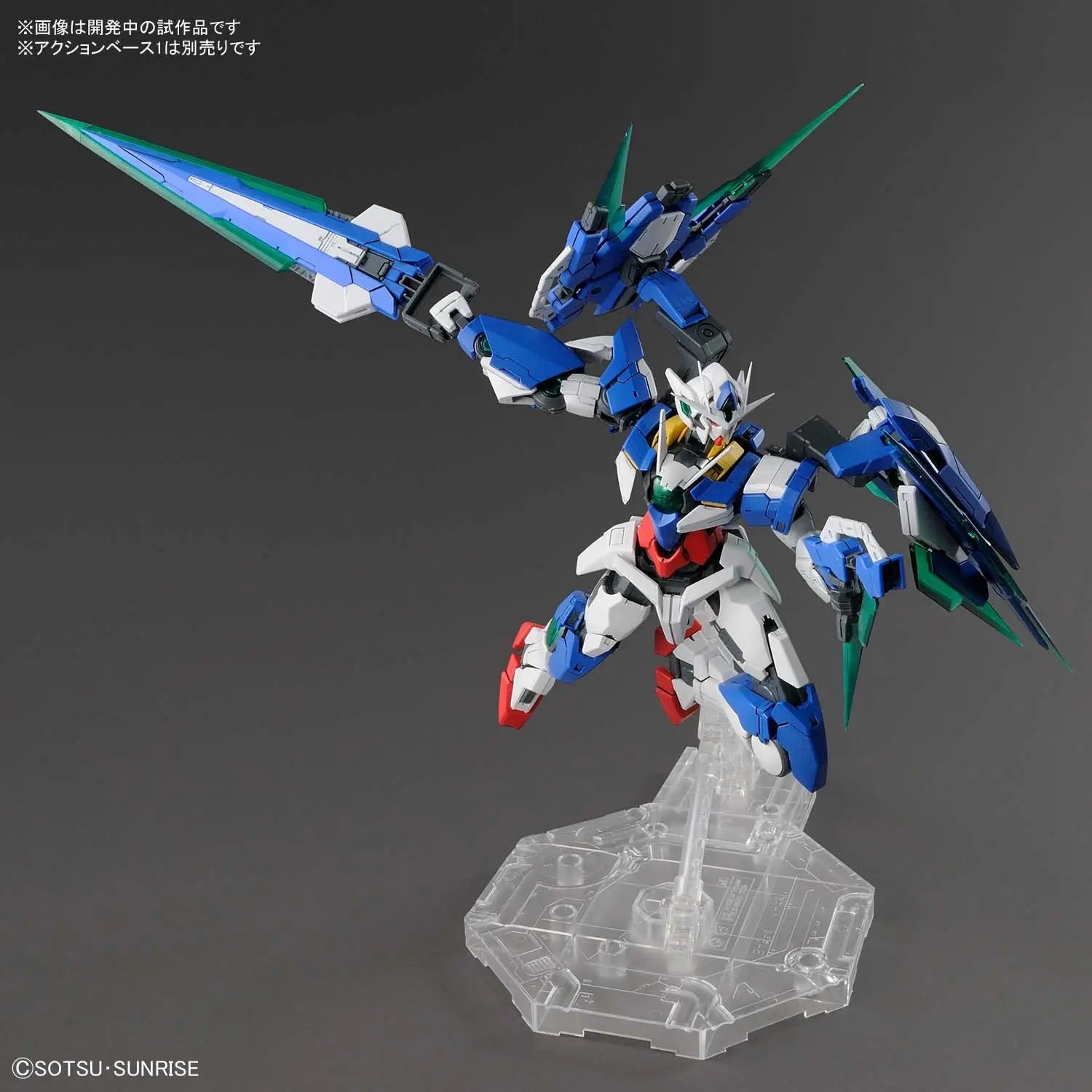 The "GN Sword IV Full Saber" and armaments with various functions can be recreated using newly designed parts. The back section of the kit can be equipped with a GN condenser and a stand for the GN Sword IV is also included. A new head antenna designed to resemble Kanetake Ebikawa's design images will be included as a bonus part.