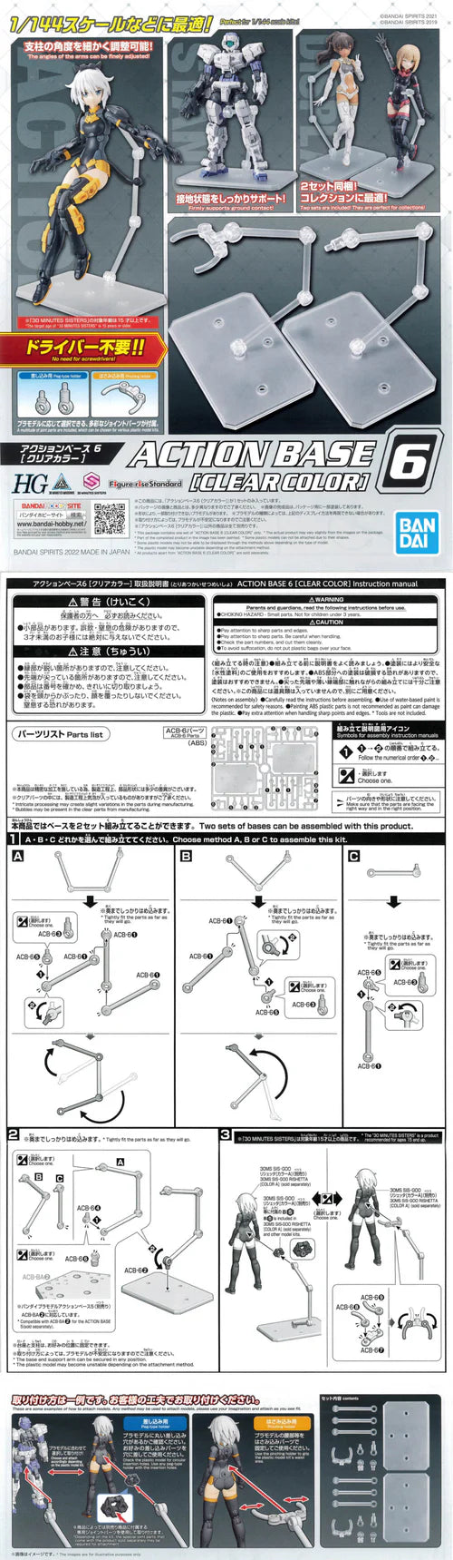 تتميز قواعد الحركة هذه لنماذج جاندام بمقياس 1/144 بأذرع قاعدة غير بارزة، ويمكنها عرض جميع أنواع الوضعيات، بما في ذلك وضعيات الوقوف والحركة. تتضمن المجموعة محولات وحوامل متنوعة، ما يتيح لك استخدام مجموعة متنوعة من نماذج جاندام بمقياس 1/144.