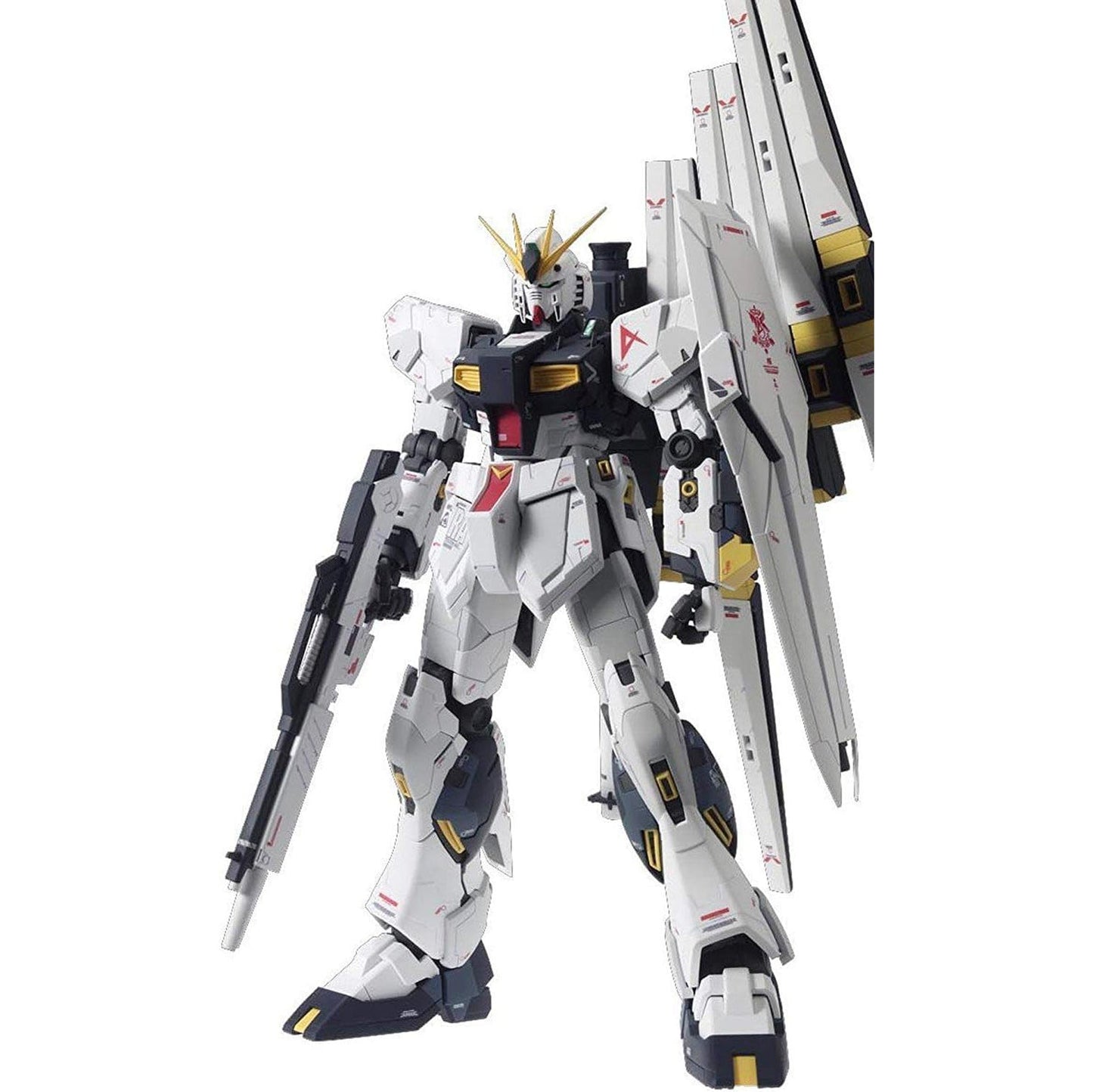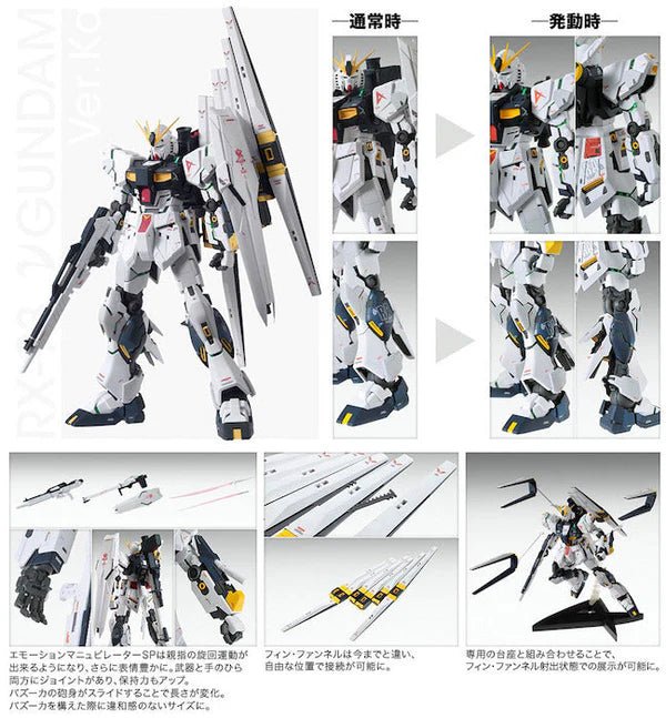 This modern version of the Nu Gundam has been designed by esteemed mechanical designer Hajime Katoki as part of the G-Dome at the Gundam Front Tokyo exhibit. Featuring new modeling technology refined since the original MG Nu Gundam release, this Ver. Ka incorporates new gimmicks such as foldable tabs on weapons to allow for better gripping and a head with light up eyes using an LED (sold separately). Hands on this release feature a new refined articulated finger system used on the larger scale Perfect Grade series allowing expressive hand and individual finger movement.