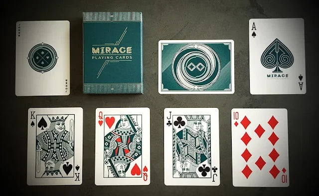 Conceptualized by magician Patrick Kun with assistance from Simon Black/Toby, MIRAGE is a modern elegant deck of playing cards specially crafted for both magic and cardistry. The back features an optical spiral illusion when spins which is great for Cardistry. Also, the interior design for the tuck case has a nice 3D looking pattern to match the theme.