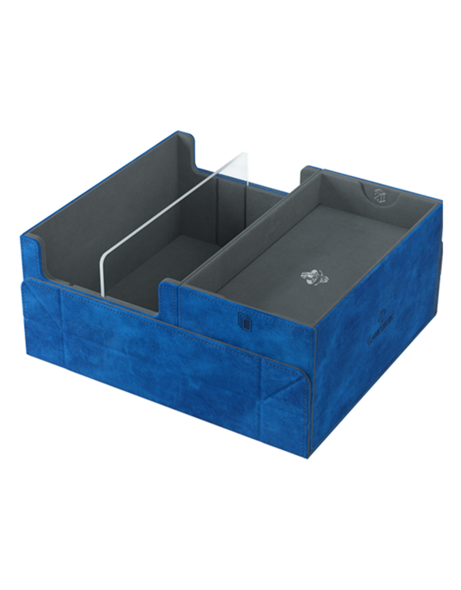 The Games‘ Lair 600+ can hold 600 double-sleeved* or 800 single-sleeved* cards in the main compartment. If card storage is not the purpose, the acrylic divider can be removed to store any kind of deck boxes, games, or accessories.