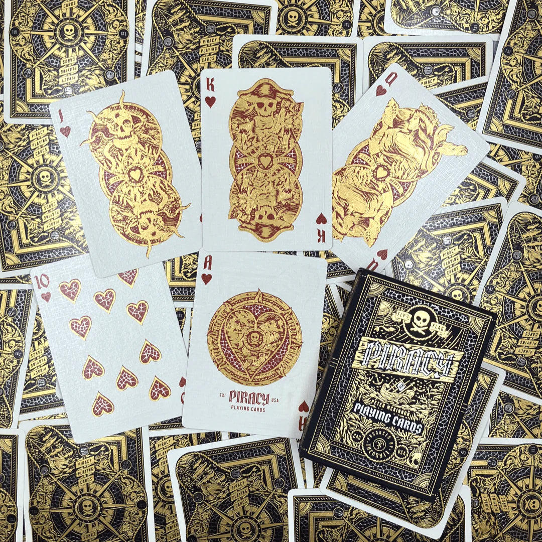 Set sail to a world uncharted and become a dweller of the open seas with Piracy Playing Cards. Secrets and lost treasures wait to be discovered - will you embark on the journey?